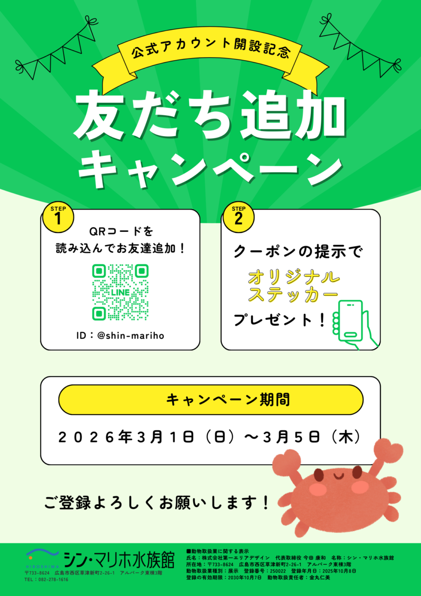 広島の水族館|シン・マリホ水族館からの最新のお知らせ